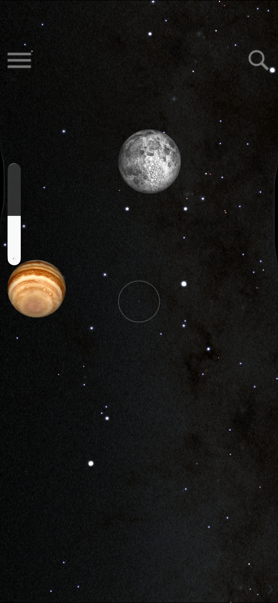The app shows the planets from their system its not a view of the actual planets, but a representation. The app allows me to take a screen shot, and thats todays photo, the view from earth looking at the moon, with Jupiter in the background.