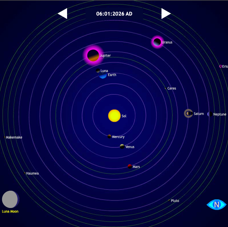 I also use a website https://www.theplanetstoday.com/index.html to show the location of the planets and their orbits. just to put the view I have taken into context. I took the screen grab late last night and the location this morning, but it makes little difference to the location of Jupiter the moon and the view fron Earth.